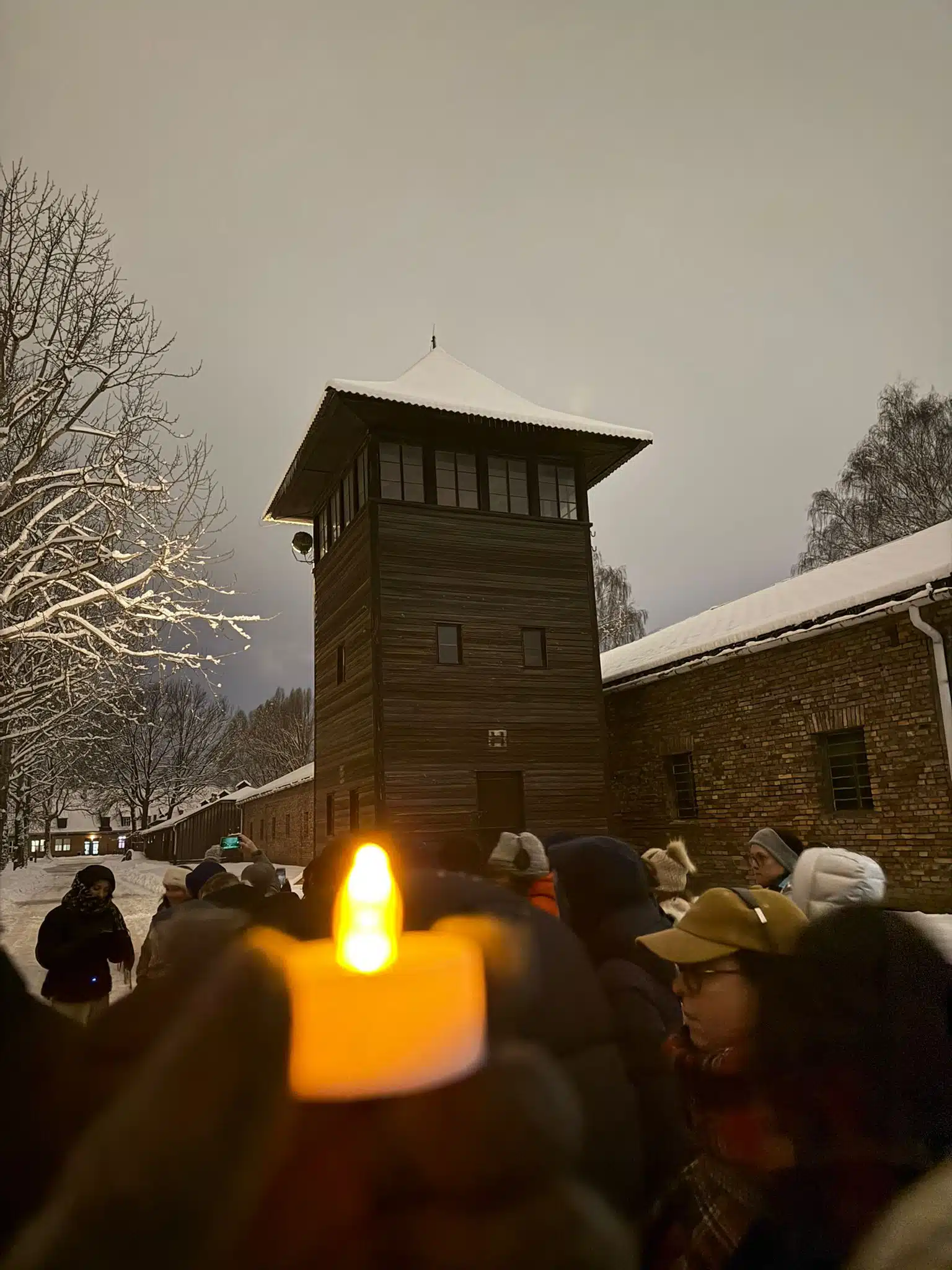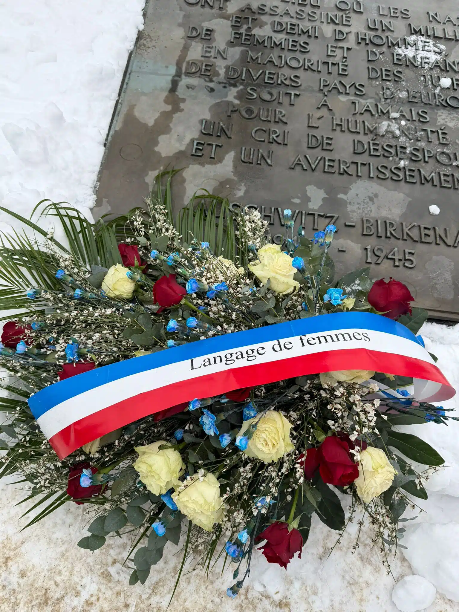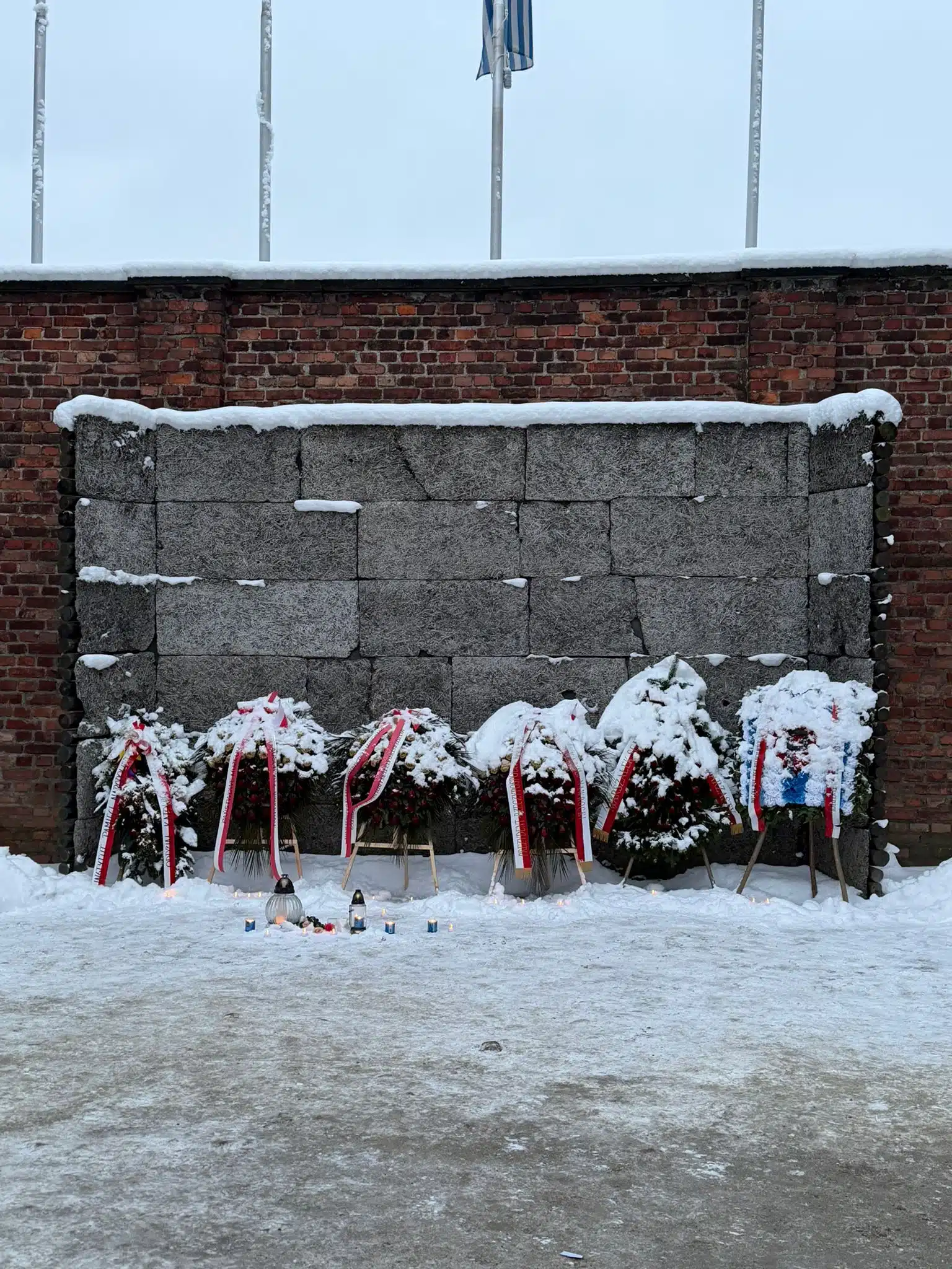 The program included wreath-laying and candle-lighting ceremonies. Delegation members recited the “Serment aux Filles de Birkenau” (“Oath to the Daughters of Birkenau”), paying homage to the Jewish women murdered by the Nazis there.