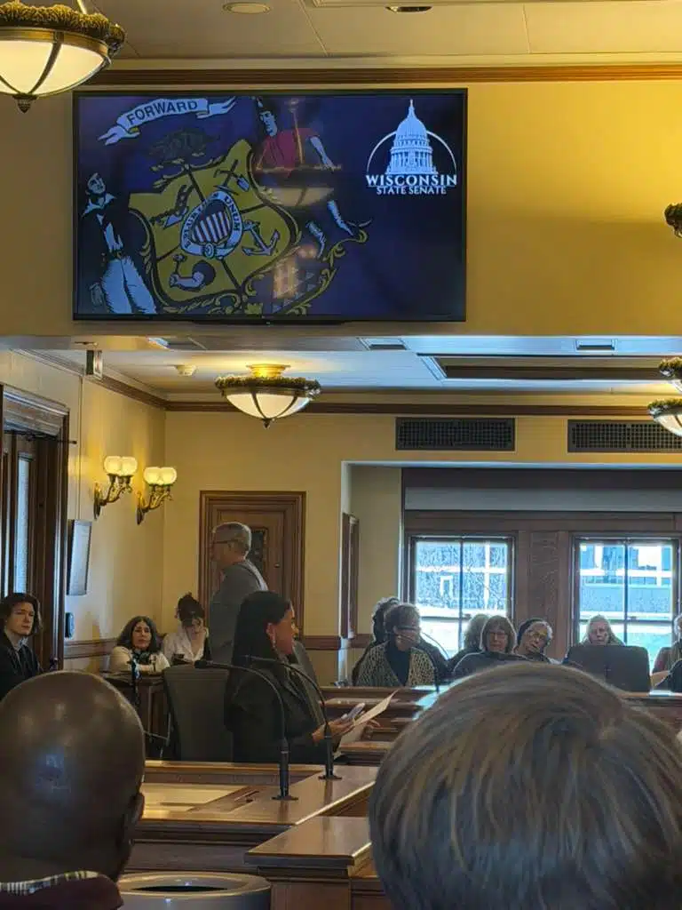 The bill is supported by the Combat Antisemitism Movement (CAM), and CAM Director of State Engagement David Soffer and Public Affairs Officer and October 7th survivor Natalie Sanandaji spoke before the committee at Wednesday’s hearing at the State Capitol in Madison.