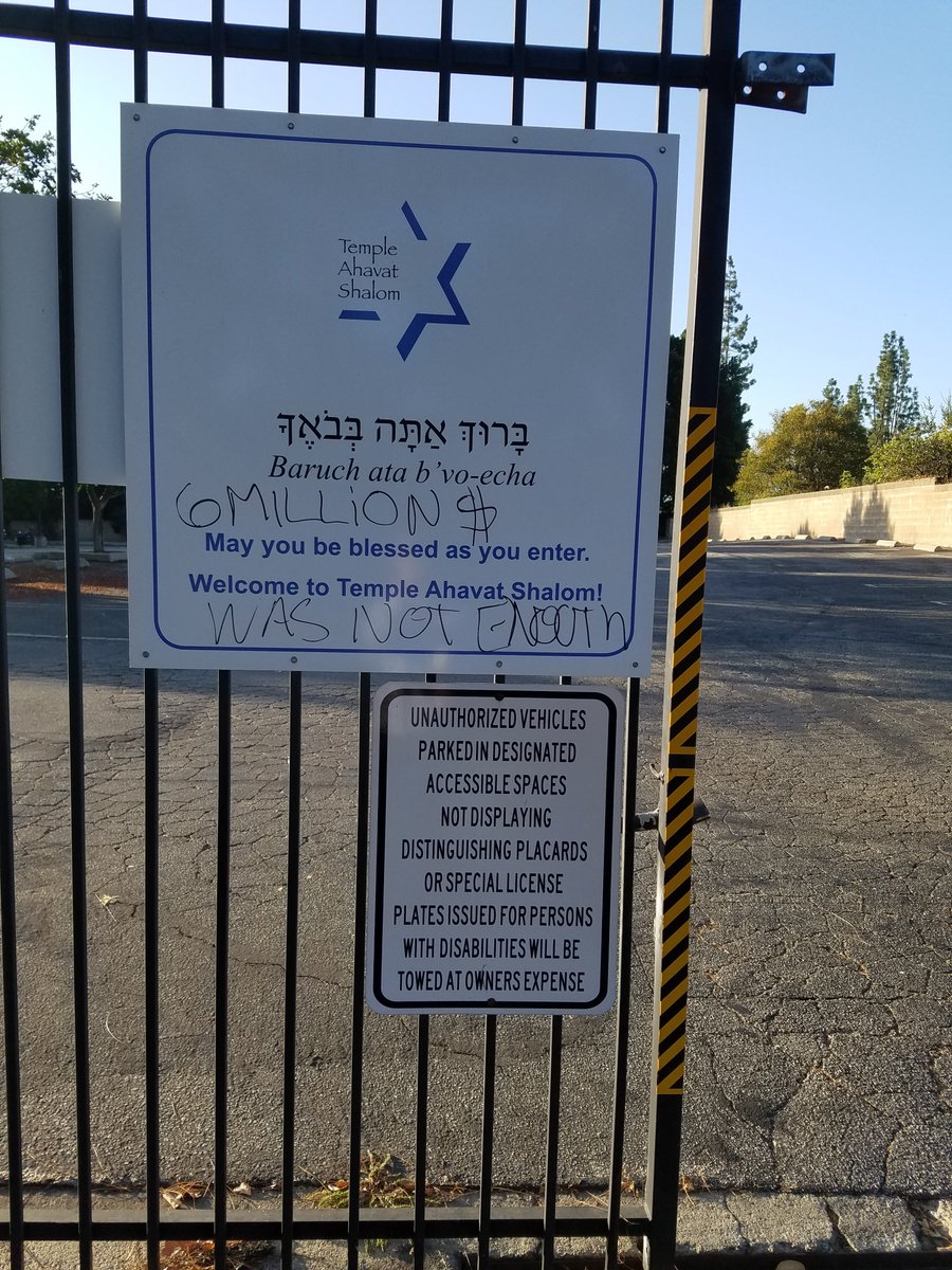 Another synagogue in Los Angeles was vandalized with an anti-Jewish message. “Six million $ was not enough,” read the message drawn in marker on the welcome sign affixed to the gate of Temple Ahavat Shalom. Read Here