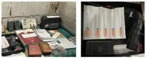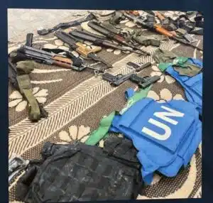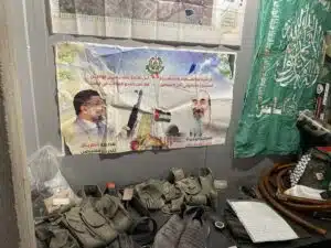 Hamas’s elite Nukhba unit left behind specially printed Qurans and operational booklets that instruct fighters which prayers and verses to recite before each military action. Fatwas and committee rulings sit alongside those materials, invoking faith to justify murder and hostage-taking. Nearby, physical tools — tasers, zip ties, syringes, tourniquets, and capsules — demonstrate how Hamas fused religious indoctrination with the practical means of murder and abduction.