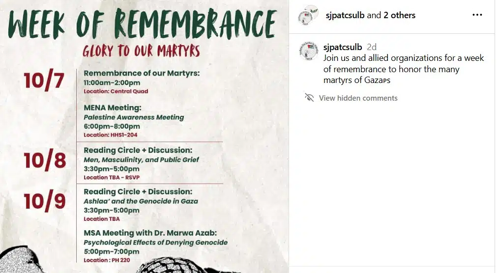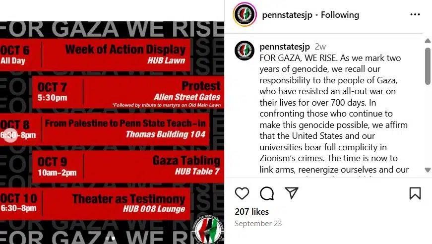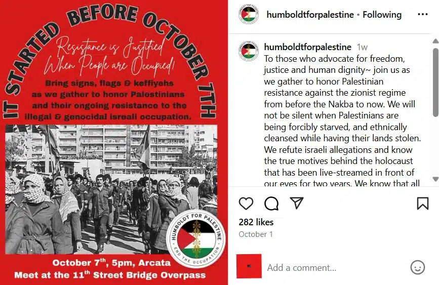 Meanwhile, other activists chose to commemorate the two-year anniversary of the deadliest single-day slaughter of the Jewish people since the Holocaust by glorifying the carnage. Ideologically motivated by the belief that Israel is an illegitimate country and that its Jewish inhabitants are “settlers,” many anti-Israel activists view antisemitic terrorist organizations like Hamas as “righteous” fighters against “oppression.” Accordingly, the October 7th massacre becomes not a horrific crime but rather a success because of the pain it caused Israelis.