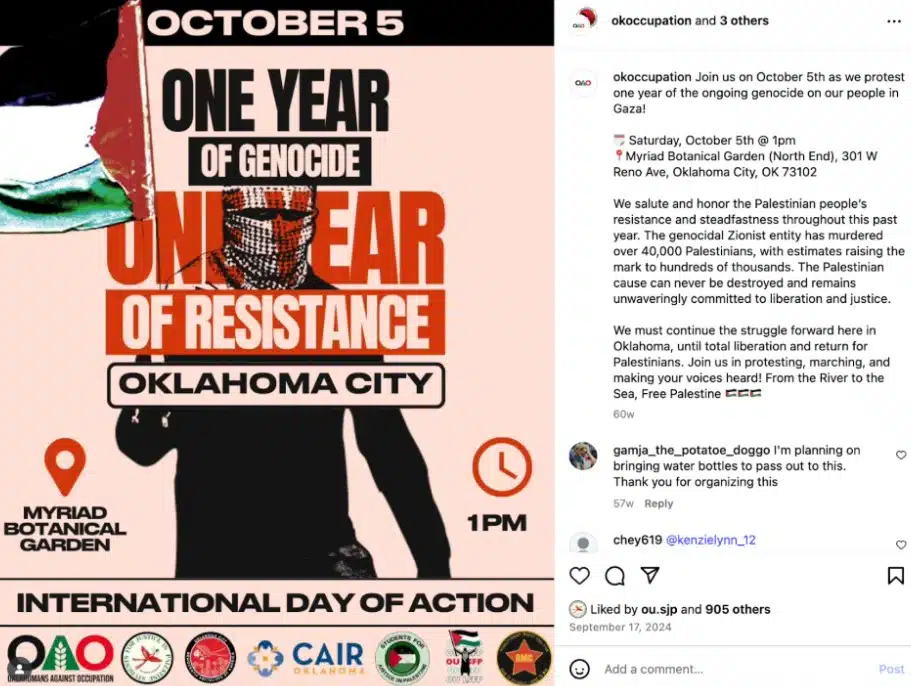 As part of this initiative, the ARC recently conducted an investigation analyzing content posted by the SJP chapter at the University of Oklahoma in Norman on its Instagram account.